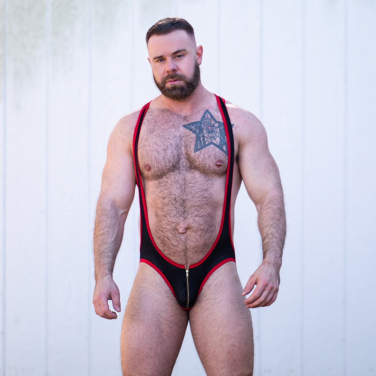 We took our years of expertise in designing mesh singlets and fused it into a fresh mens bodysuit silhouette. The pouch zipper adds a flirty accent and promises quick fun whenever you need it. With a jock-style back, this gay singlet frames your assets perfectly while accentuating your chest and shoulders. Slip into it, and you’ll see why a bodysuit men love can still pay tribute to the iconic jock strap.