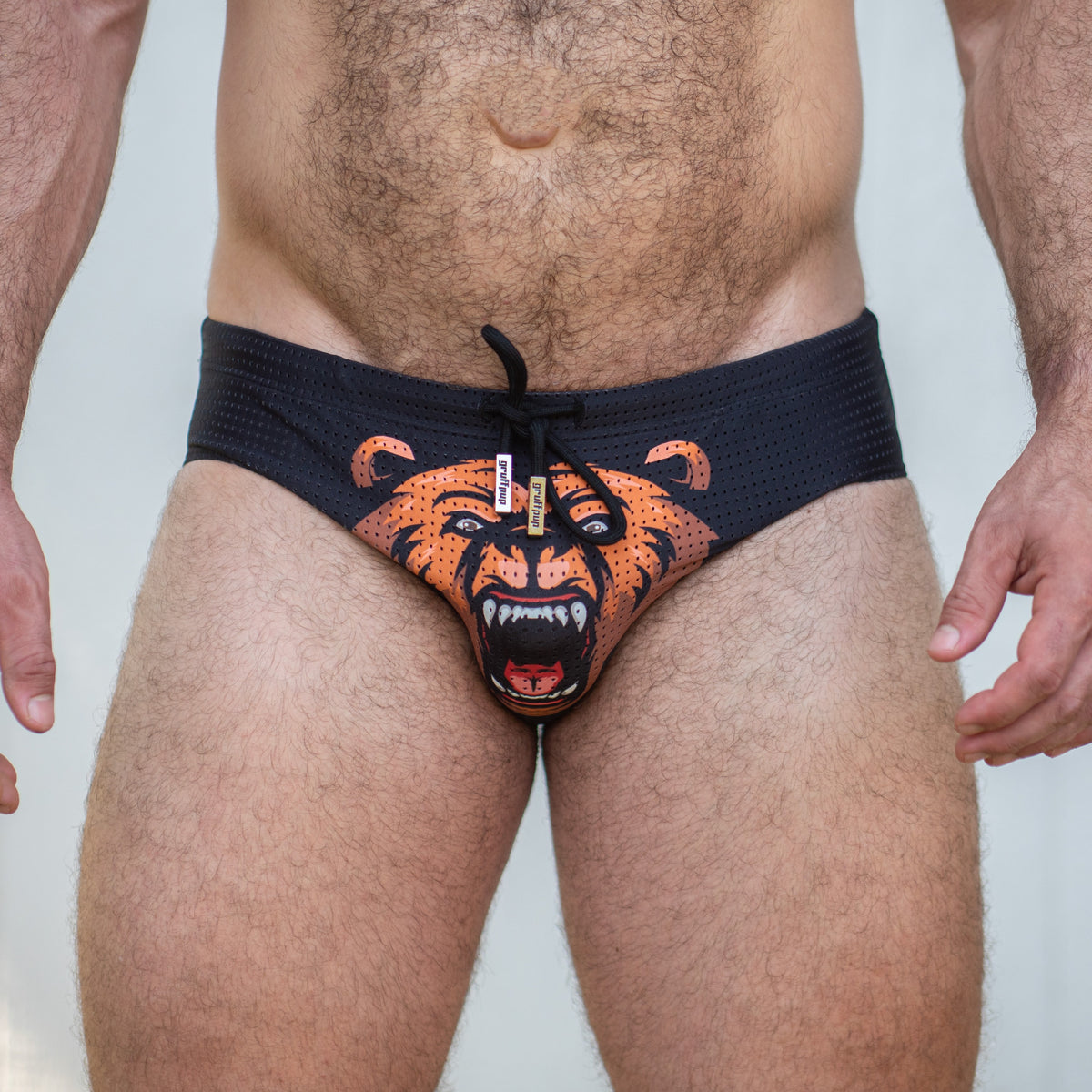 A swim brief with a bulge-enhancing pouch that lifts and accentuates your package, making it visibly larger and more visible. Plus a bear graphic right on the pouch that will definitely turn heads at the pool 😉. Woof! 🔥 This is the absolute best in mens enhancing swimwear - and be sure to check out all the varieties of colors and designs.