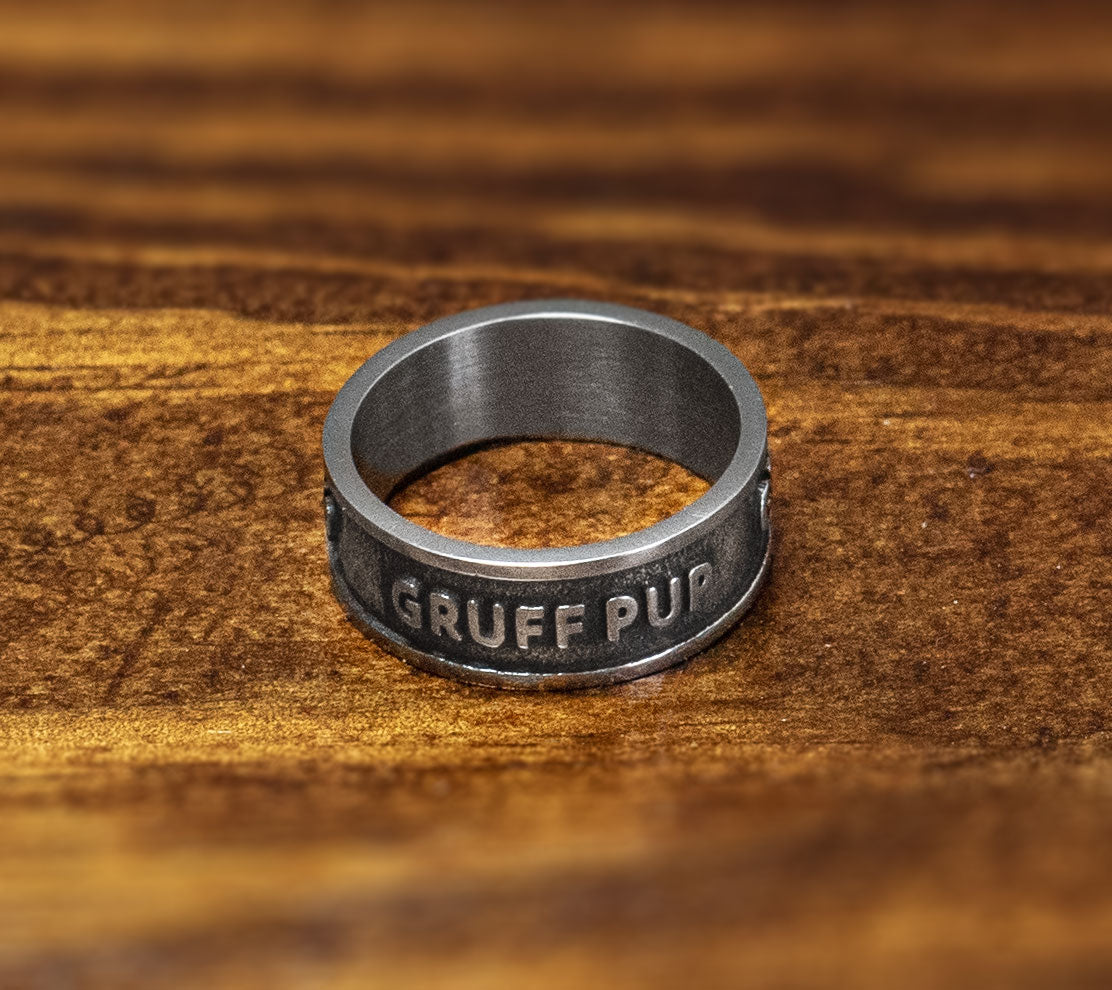 Constructed entirely from stainless steel, this ring is built to withstand daily wear without tarnishing. The low-maintenance material means it keeps its polished look over time, so you can wear it confidently knowing it will hold up for the long run. Stainless steel just doesn’t quit, and neither does Gruff Pup.