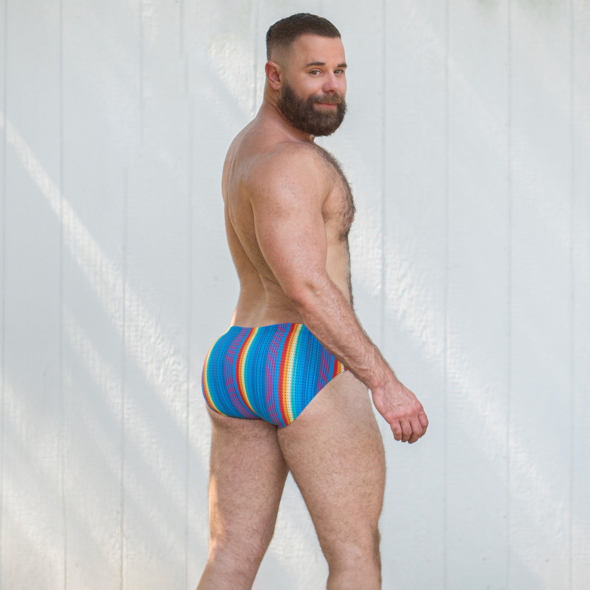 The mid-length silhouette of the Rainbow Ripple Bulge Boost Swim Brief flatters a wide range of body types without revealing too much or too little. Striking a perfect balance between coverage and appeal, this cut is designed to bring out your best, whether you’re lounging by the pool or hitting the waves.