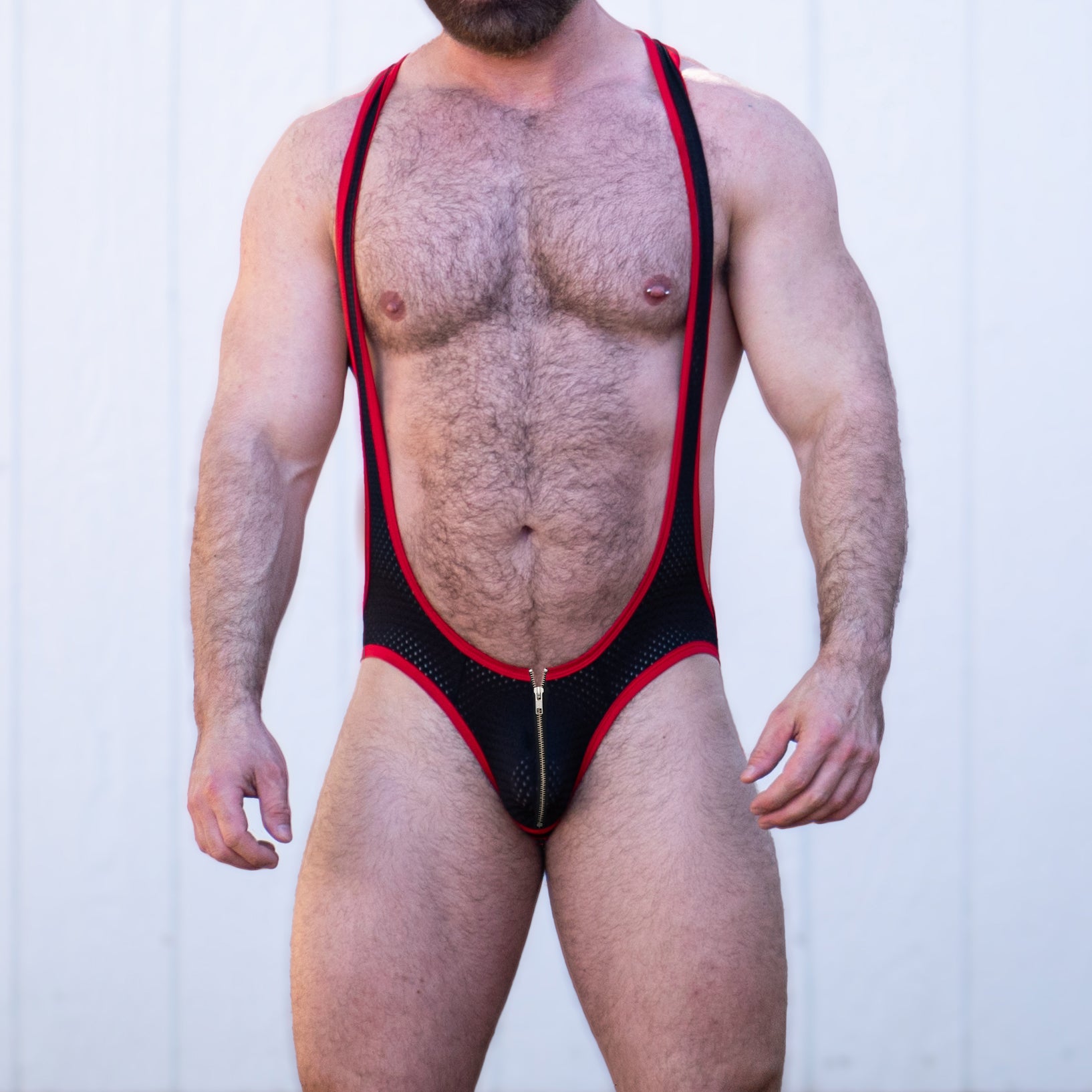 We took our years of expertise in designing mesh singlets and fused it into a fresh mens bodysuit silhouette. The pouch zipper adds a flirty accent and promises quick fun whenever you need it. With a jock-style back, this gay singlet frames your assets perfectly while accentuating your chest and shoulders. Slip into it, and you’ll see why a bodysuit men love can still pay tribute to the iconic jock strap.